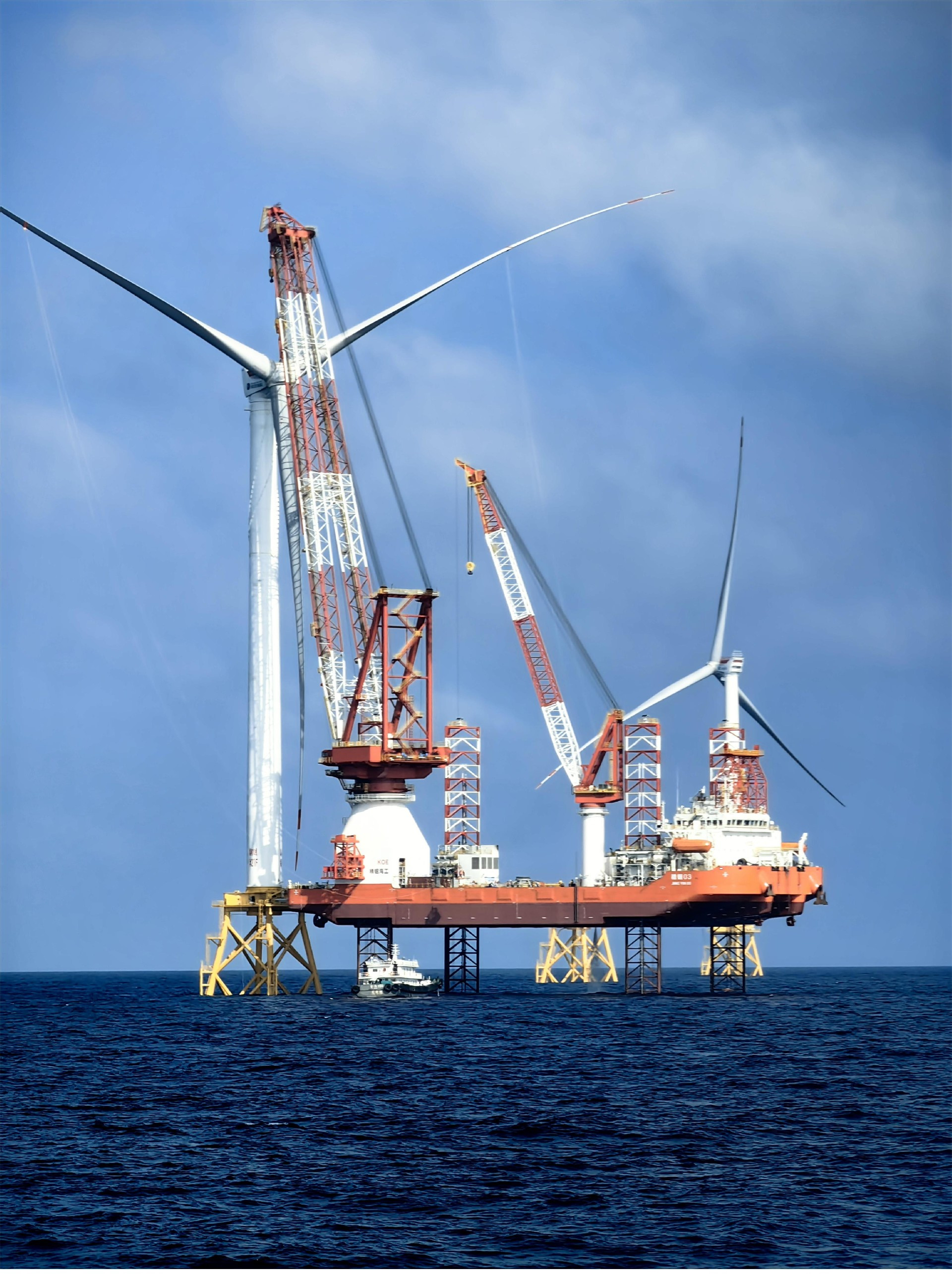“精銦03”是專門針對南海風(fēng)場的特點(diǎn)設(shè)計建造,綜合兼顧了施工能力和使用費(fèi)效的平衡;其核心作業(yè)裝備升降系統(tǒng)由我司自主設(shè)計生產(chǎn),擁有全部知識產(chǎn)權(quán);主起重機(jī)采用直徑11.5m整體式轉(zhuǎn)盤軸承,采用了世界超大型整體式軸承。同時,“精銦03”超前引進(jìn)油電混合動力能源管理系統(tǒng)和技術(shù),可實(shí)現(xiàn)全天候低碳綠色環(huán)保作業(yè),為國內(nèi)首座油電混合動力的海上風(fēng)電安裝平臺。