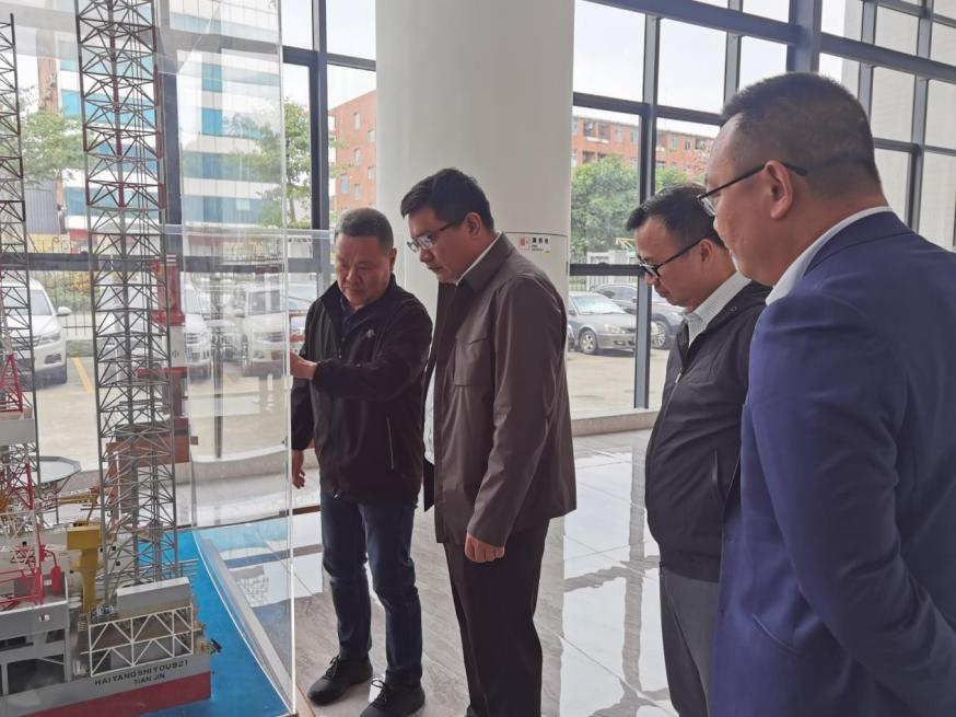 2023年11月16日,佛山市人才發(fā)展集團(tuán)有限公司黨委書記、董事長高華東,黨委副書記、董事、副總經(jīng)理區(qū)志剛;佛山市科技創(chuàng)新控股有限公司黨委書記、董事長梁廣明等領(lǐng)導(dǎo)蒞臨精銦海工調(diào)研指導(dǎo)。精銦海工總經(jīng)理吳平平熱情地接待了調(diào)研組。