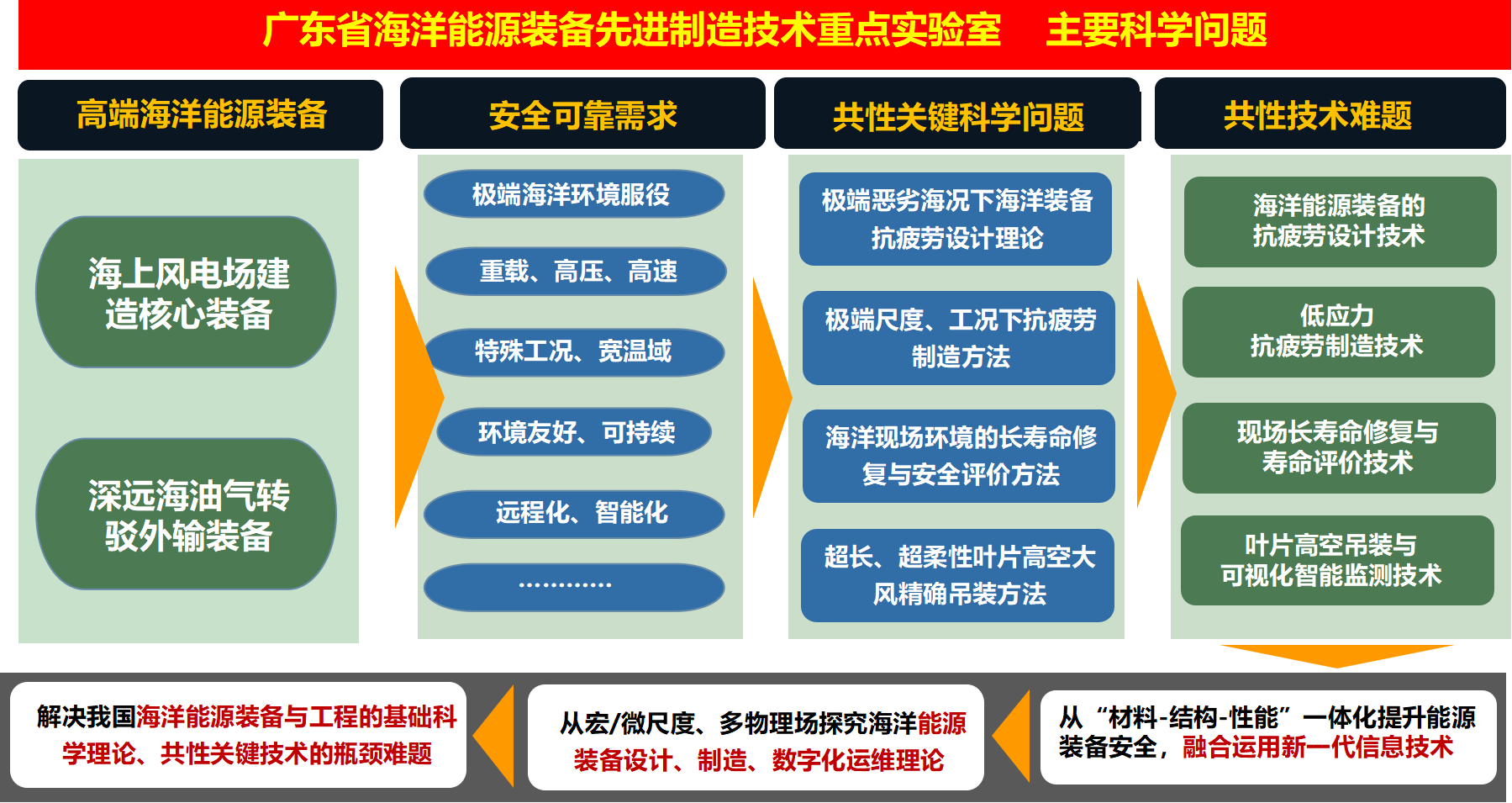 該重點(diǎn)實(shí)驗(yàn)室面向廣東省海上風(fēng)電、南海油氣資源等的戰(zhàn)略需求,圍繞超大型海上風(fēng)電場(chǎng)安裝、深遠(yuǎn)海油氣鉆采等“卡脖子”技術(shù)難題,研究抗疲勞設(shè)計(jì)、低應(yīng)力抗疲勞制造等共性關(guān)鍵技術(shù),突破海上風(fēng)機(jī)安裝平臺(tái)易“失穩(wěn)”、超大型葉片高空安裝易“失準(zhǔn)”等世界級(jí)難題,成為高端裝備領(lǐng)域有國(guó)際影響的研究機(jī)構(gòu),為廣東省戰(zhàn)略新興產(chǎn)業(yè)發(fā)展提供技術(shù)和人才支撐。
